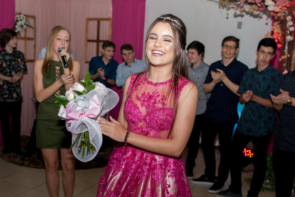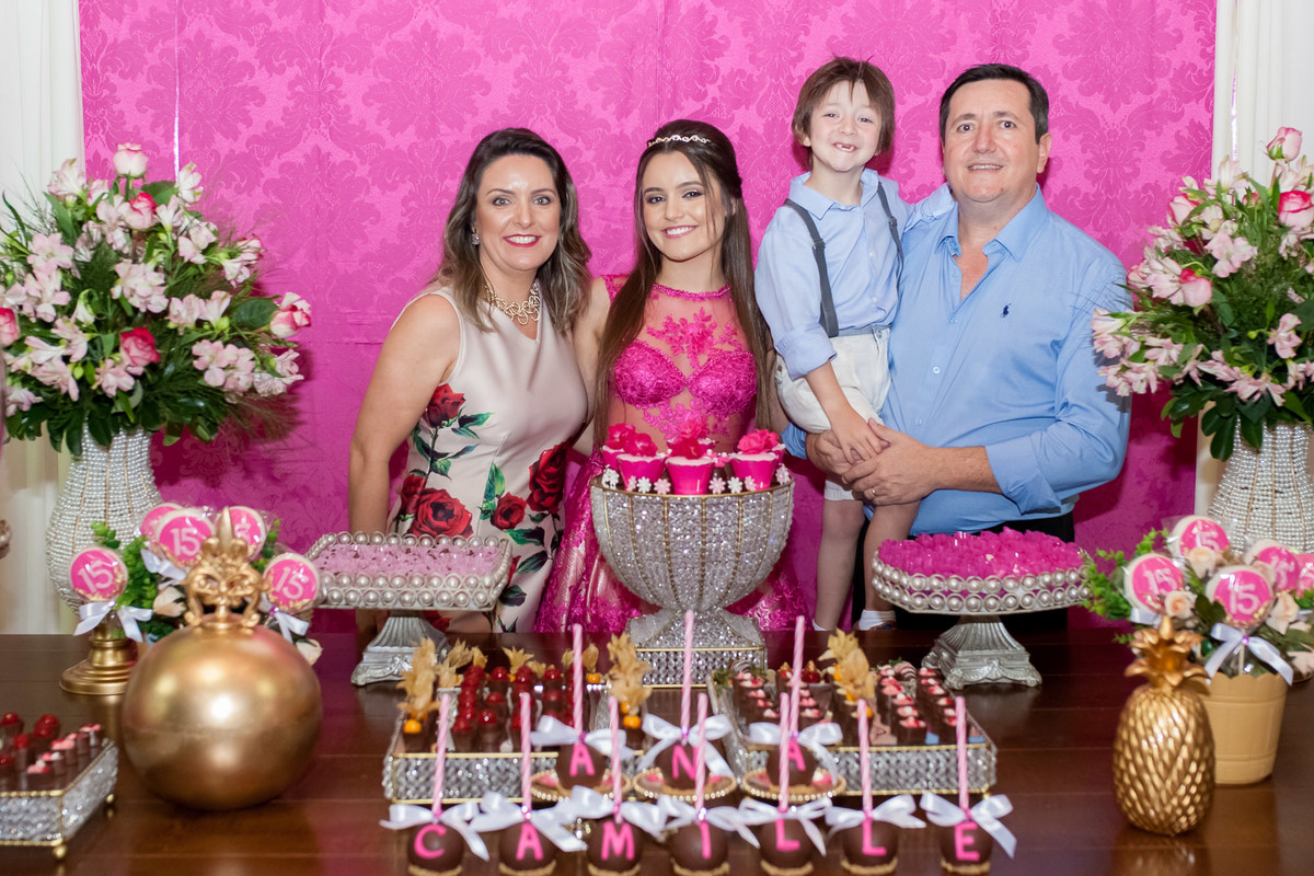 Completar 15 anos é o marco da adolescência. É deixar para trás a infância e preparar-se para novas responsabilidades, novas descobertas, novas emoções. Completar 15 anos merece festa, comemorações, familiares e amigos reunidos para celebrar a vida. Os 15 anos da Ana Camille foram cheios de emoção! Os pais super ansiosos para que tudo desse certo, a vó que costurou o vestido da neta, o pai que dançou lindamente com a filha, o irmão que corria pelo salão transmitindo alegria, a mãe prestativa recebendo os convidados, os amigos que cantaram "Trevo de Quatro Folhas" para homenageá-la. Ana Camille, obrigado por nos proporcionar a oportunidade de viver este dia tão especial com você e sua família! Que possas curtir estes 15 anos com muita saúde, alegria, amor, paz e Deus no coração! Parabéns!