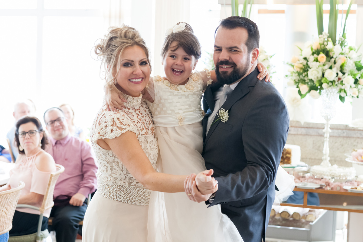 Quando recebemos a missão de registrar o casamento do Paulo e da Cris, já sabíamos que seria emoção do começo ao fim. A nossa amiguinha Laura já vinha causando em nossos corações de tanta ansiedade por ver seus pais casando. Vivemos esse casamento intensamente com esta família. Curtimos todos os momentos, o máximo possível, antes mesmo de recebermos o convite para estarmos juntos neste dia. Foram muitas conversas, muitas trocas de sugestões, muitos detalhes anotados para não deixar nada passar em branco. Cris, Laura e Mila (como nós, carinhosamente, o chamamos), quantas emoções vividas naquele domingo de manhã! Vocês três estavam tão felizes, tão apaixonados e tão conectados! Que a felicidade, o amor, a cumplicidade e a alegria vivida no dia do casamento sejam ingredientes diários presentes em suas vidas. Nós amamos vocês e esperamos ter conseguido retribuir este amor através da fotografia.