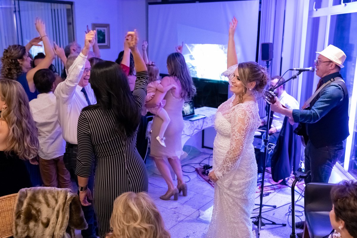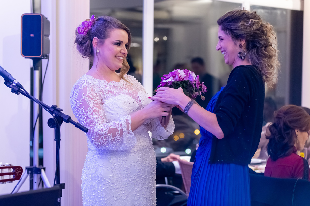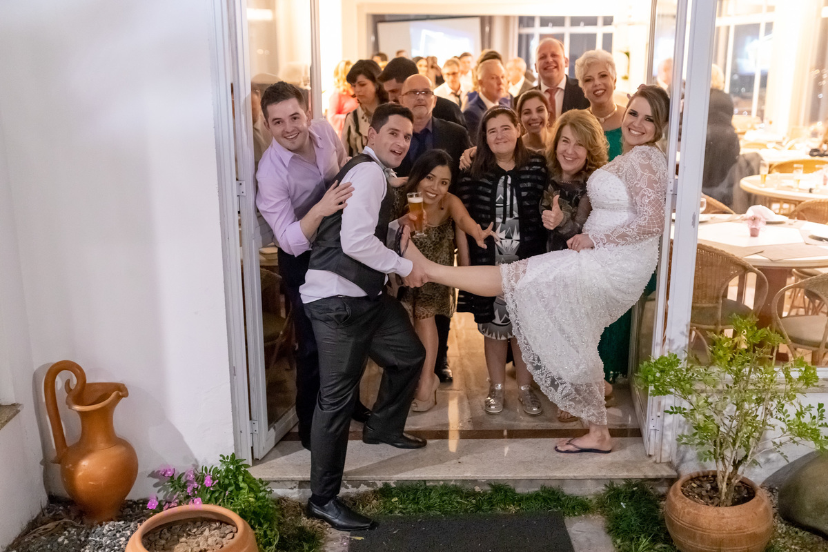 Teve amiga aniversariante sendo surpreendida com o buquê da noiva. Teve pai da noiva falando bonito e emocionando. Teve muita gente animada e dançando muito!