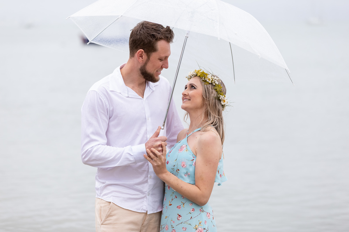 Antes de voltarmos pra casa paramos na beira mar para finalizarmos o ensaio, e adivinha quem apareceu? A chuva! Para alegria da Lais que tanto queria terminar as fotos debaixo de chuva!