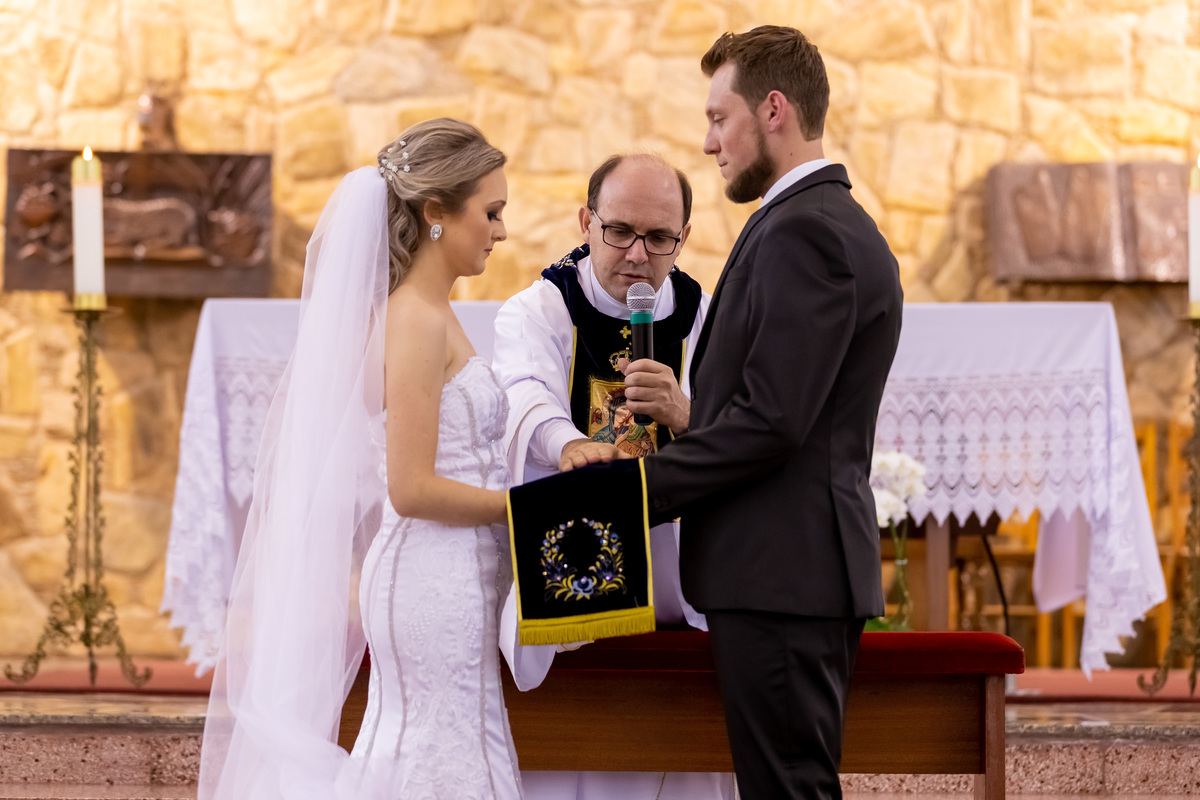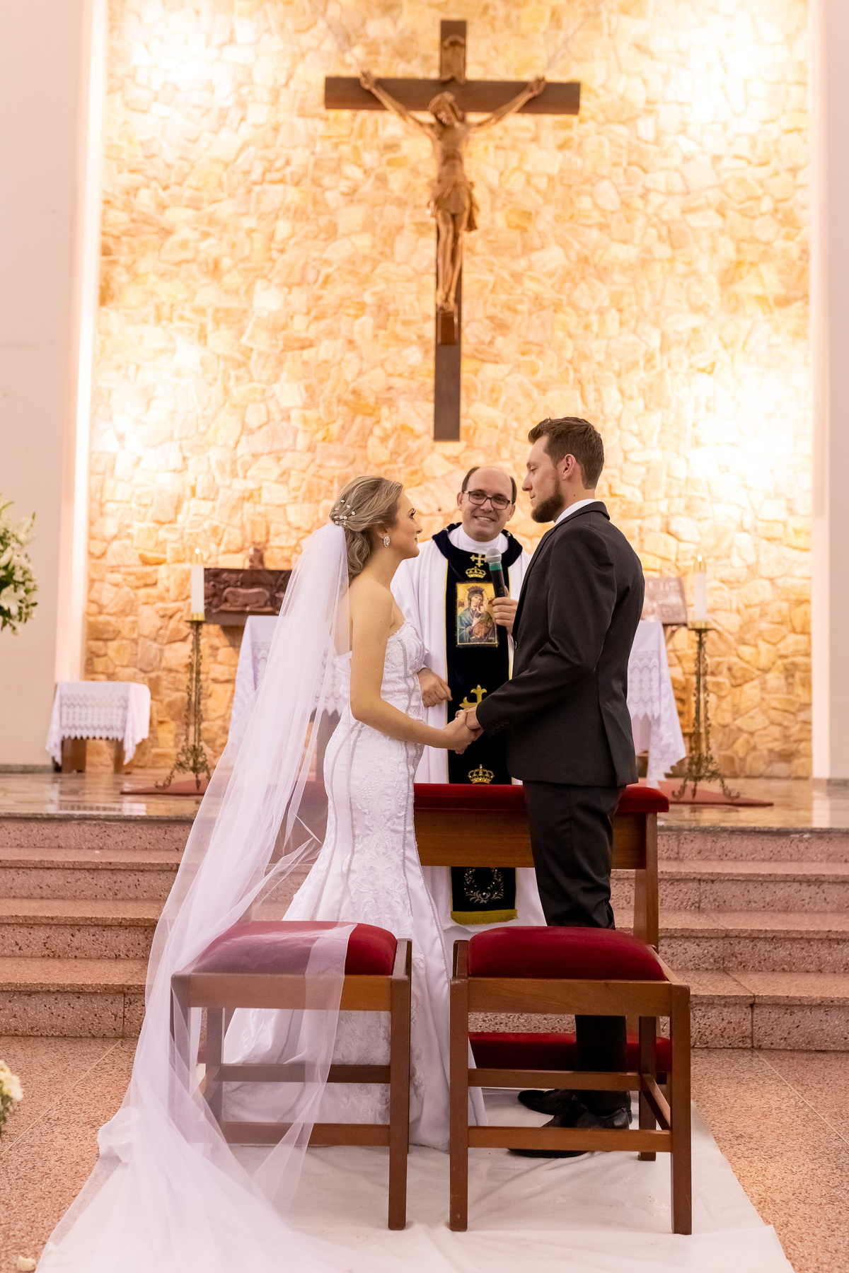 Igreja cheia, uma trilha sonora escolhida à dedo, noivos e pais emocionados, uma homilia linda, que não poderia ter vindo de outra pessoa senão do Pe. Silvano Costa!