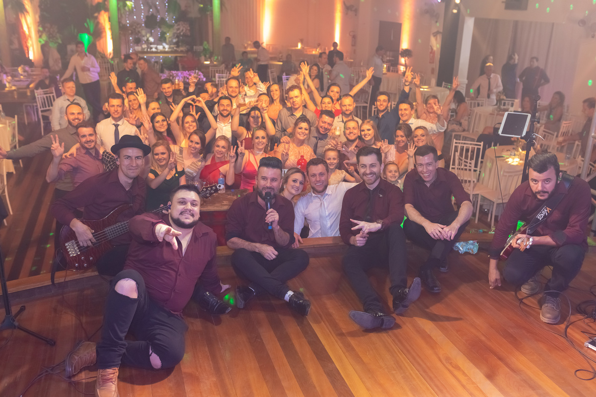 E depois do momento pop star da Joana, a Banda Lua de Mel teve que dividir o palco com as amigas da noiva, amigos do noivo, pais dos noivos e até com os próprios noivos! Sim, o Fábio e a Lais subiram no palco e cantaram juntos para os pais do Fábio.