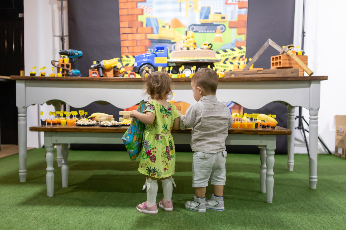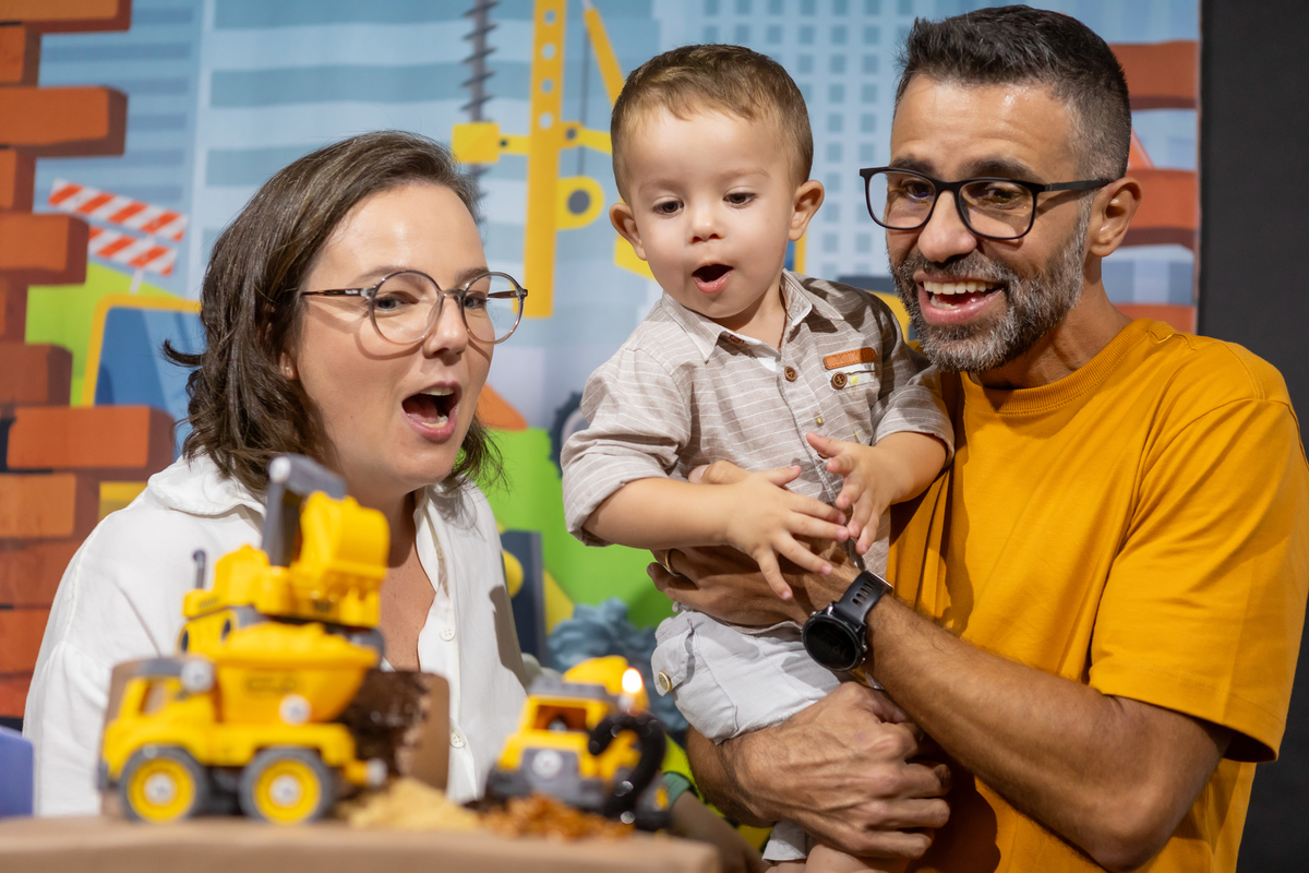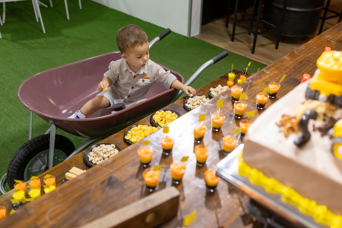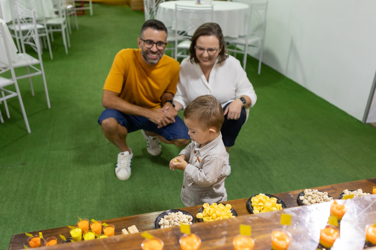 Mas teve amor, teve os convites, lembrancinhas da mamãe, teve rede de apoio e docinhos com a ajuda da vovó e do vovô, teve a ajuda da oma e do opa para o café e o bolo, teve o tio Gogo sendo cozinheiro, teve o tio Du sendo o fotógrafo (quando nós, mamãe Débora e papai Nando, aparecíamos nas fotos), teve a presença de pessoas queridas que amamos ter por perto!