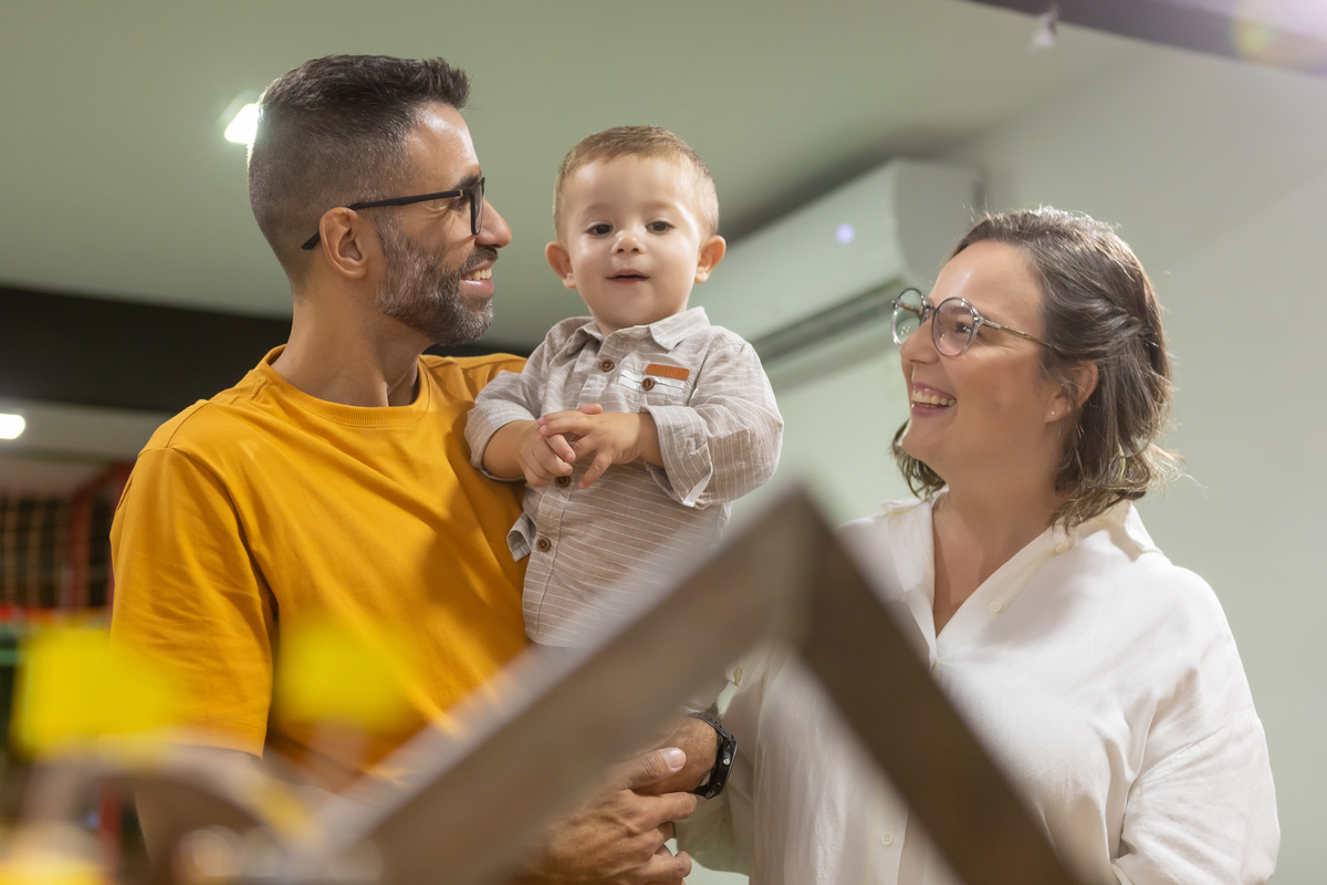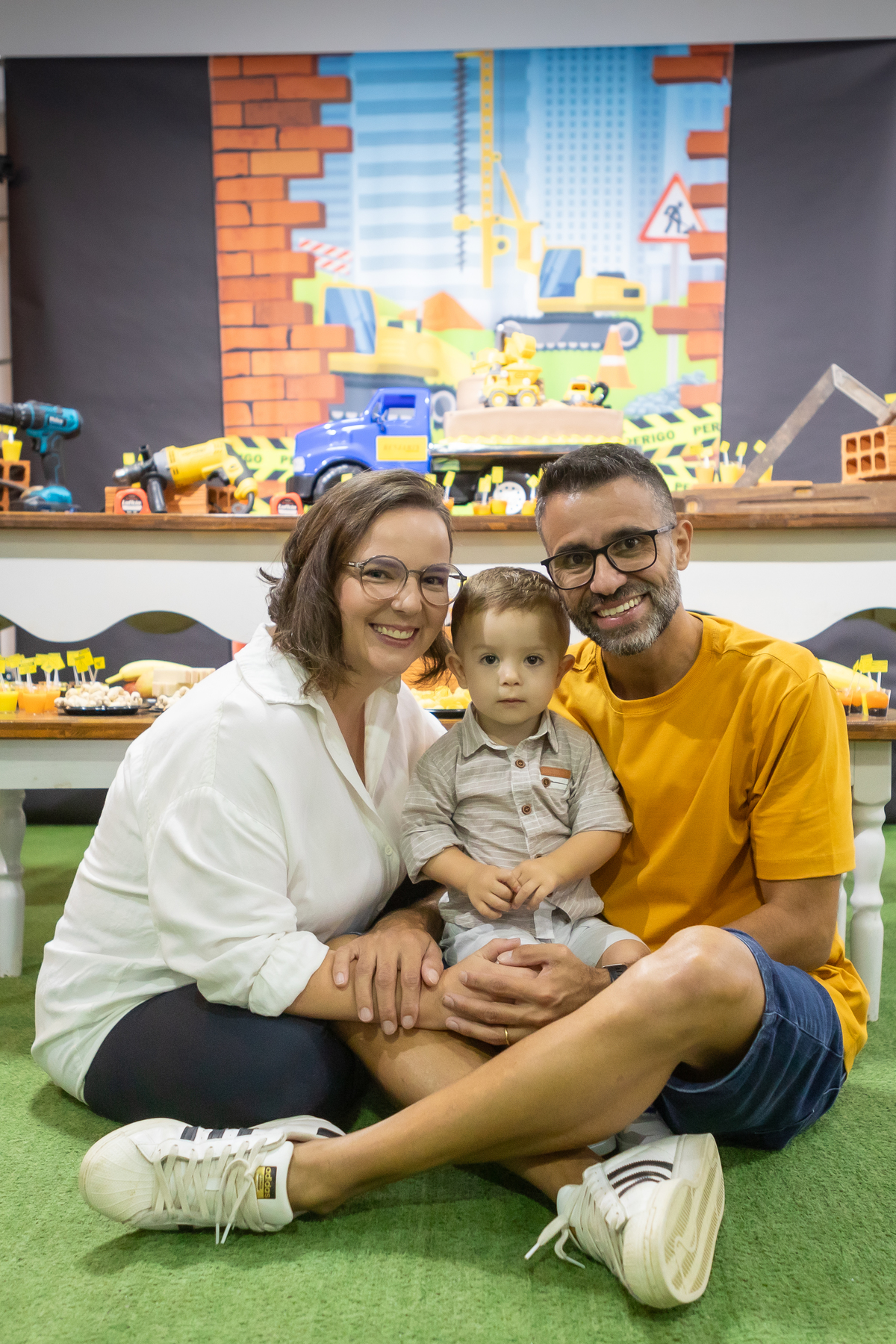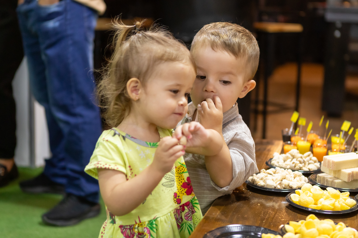 Mas teve amor, teve os convites, lembrancinhas da mamãe, teve rede de apoio e docinhos com a ajuda da vovó e do vovô, teve a ajuda da oma e do opa para o café e o bolo, teve o tio Gogo sendo cozinheiro, teve o tio Du sendo o fotógrafo (quando nós, mamãe Débora e papai Nando, aparecíamos nas fotos), teve a presença de pessoas queridas que amamos ter por perto!