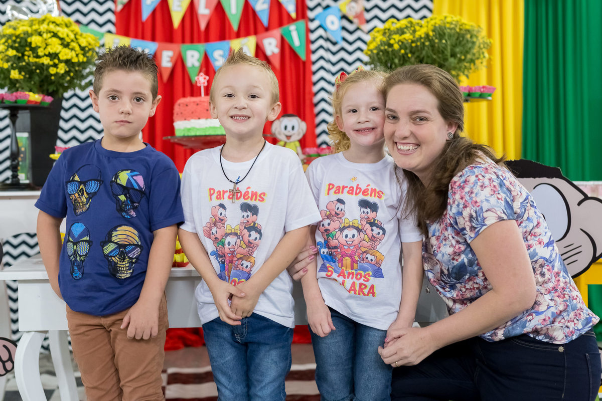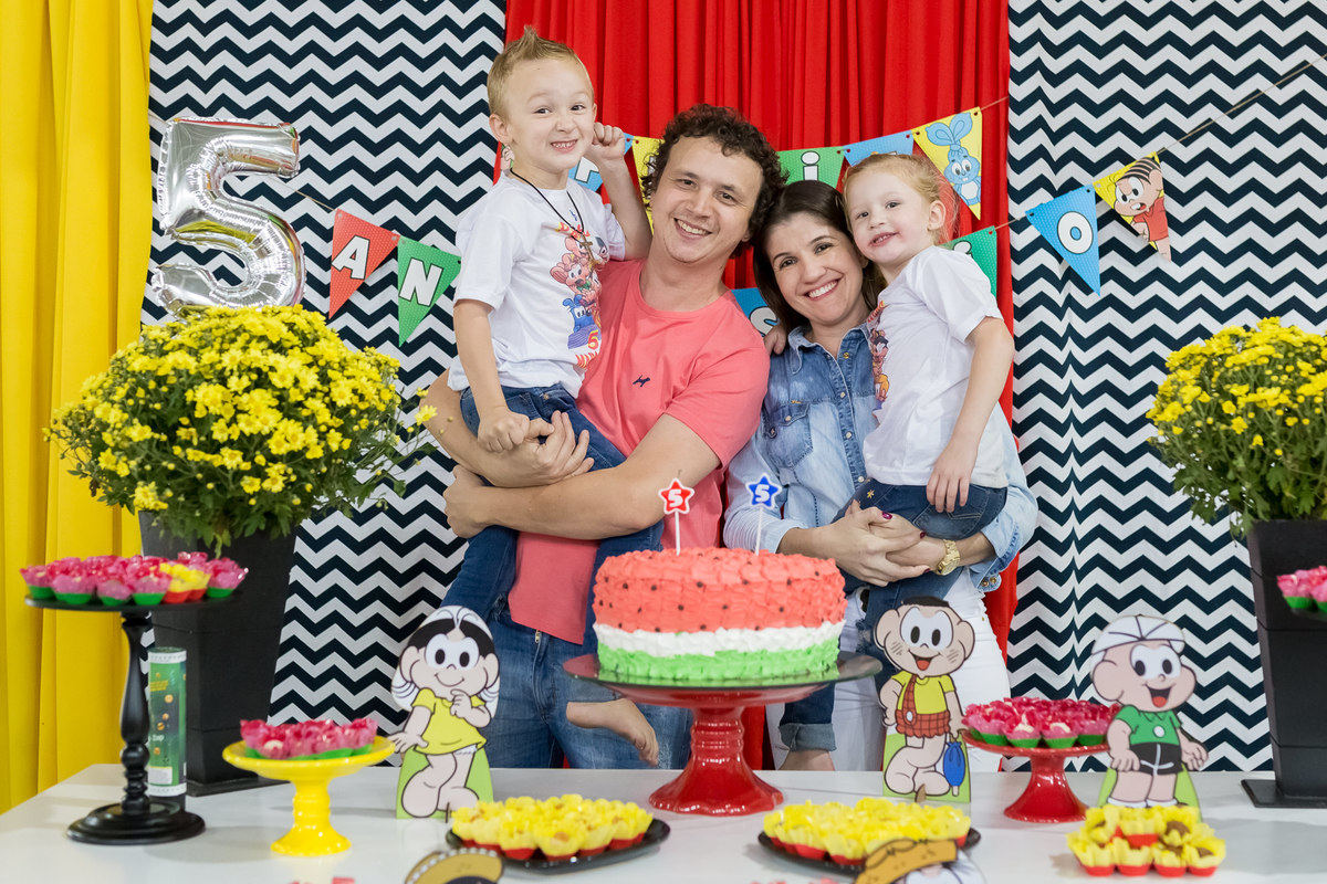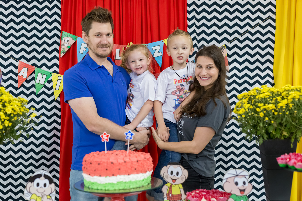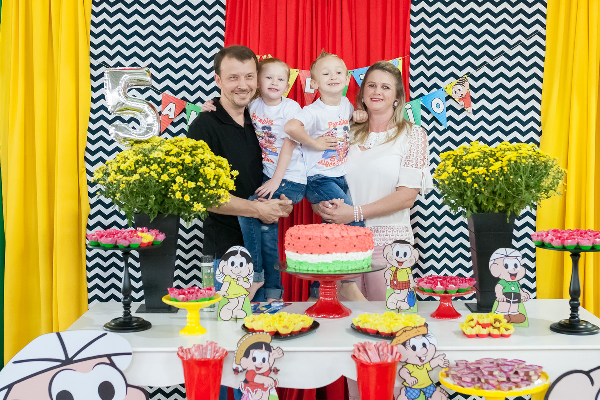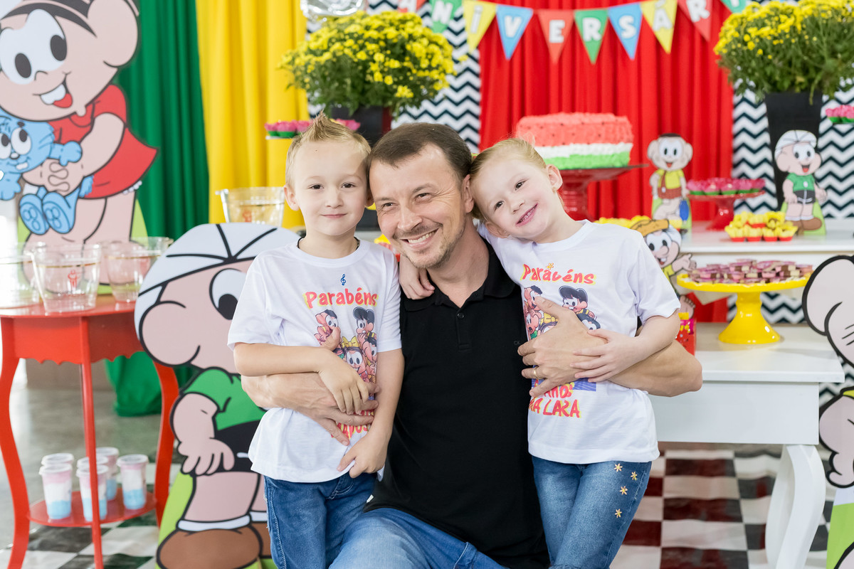Que festa divertida e feita para as crianças! A decoração com a Turma da Mônica estava linda, colorida, leve e tão a cara dos aniversariantes. Músicas infantis, parquinhos sempre cheios, muitos amiguinhos correndo de uma lado pro outro, as mamães batendo papo.