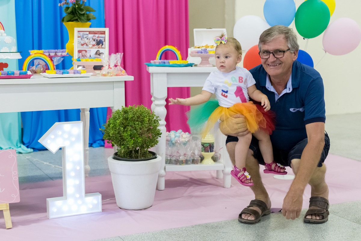 A festa foi preparada com todo carinho, todos se empenharam e conseguiram deixá-la com a cara da Betinha, cheia de vida, alegre e toda colorida!