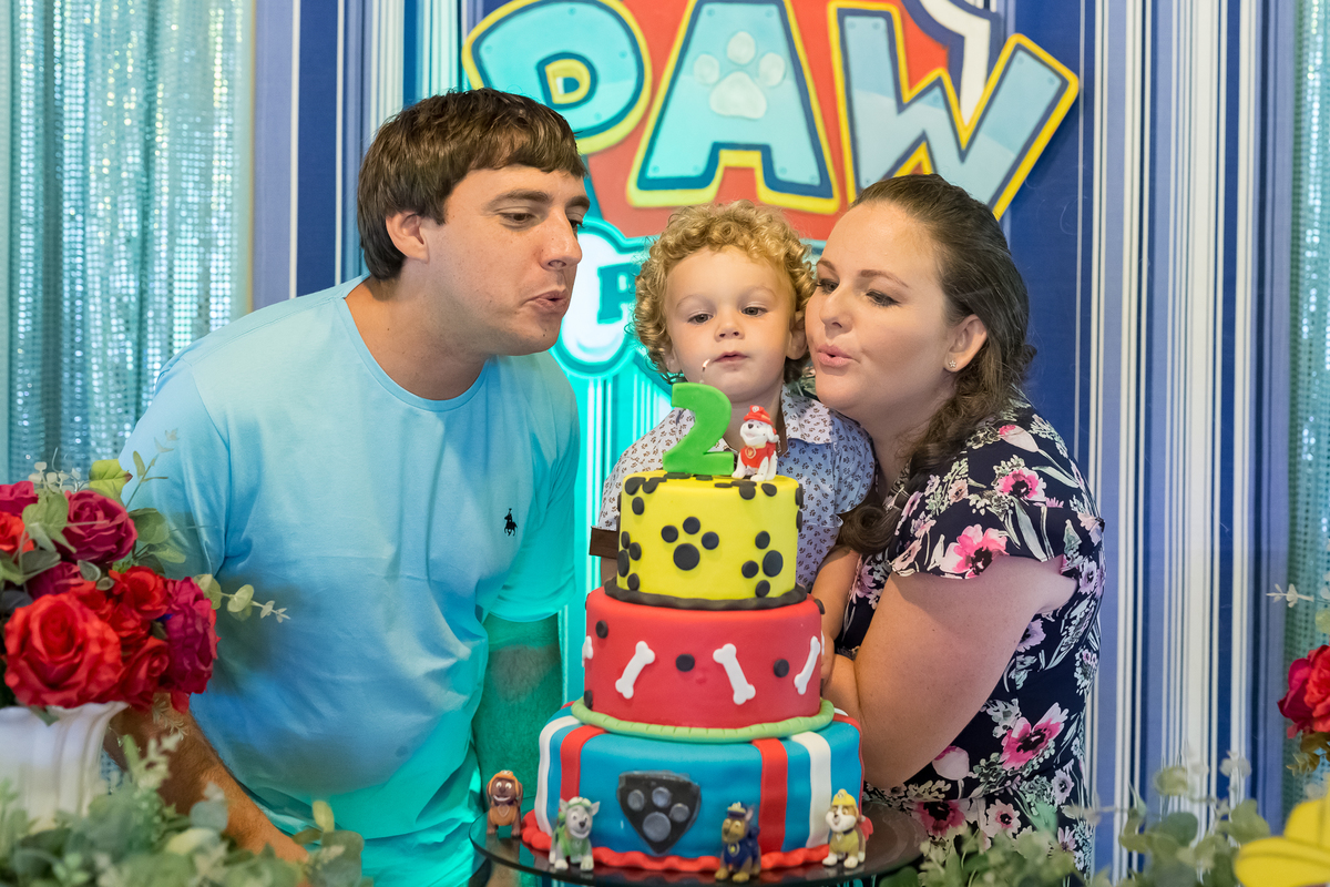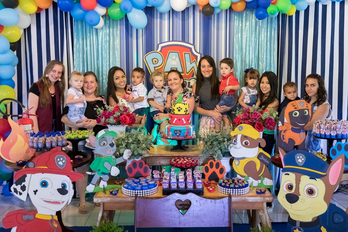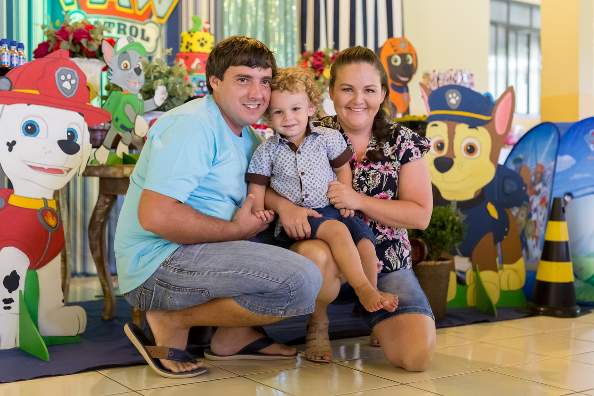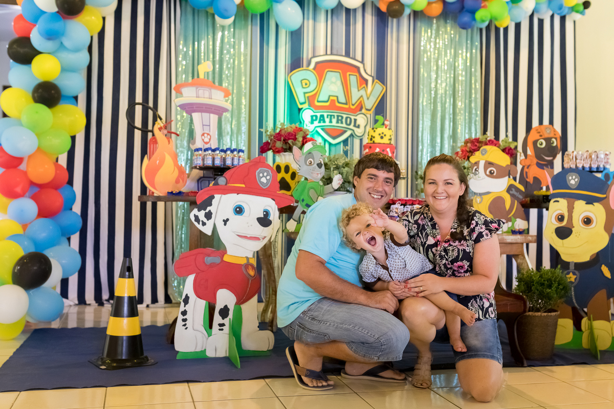 A mamãe Ellin e o papai Flávio preparam uma festa linda, na companhia da Patrulha Canina.