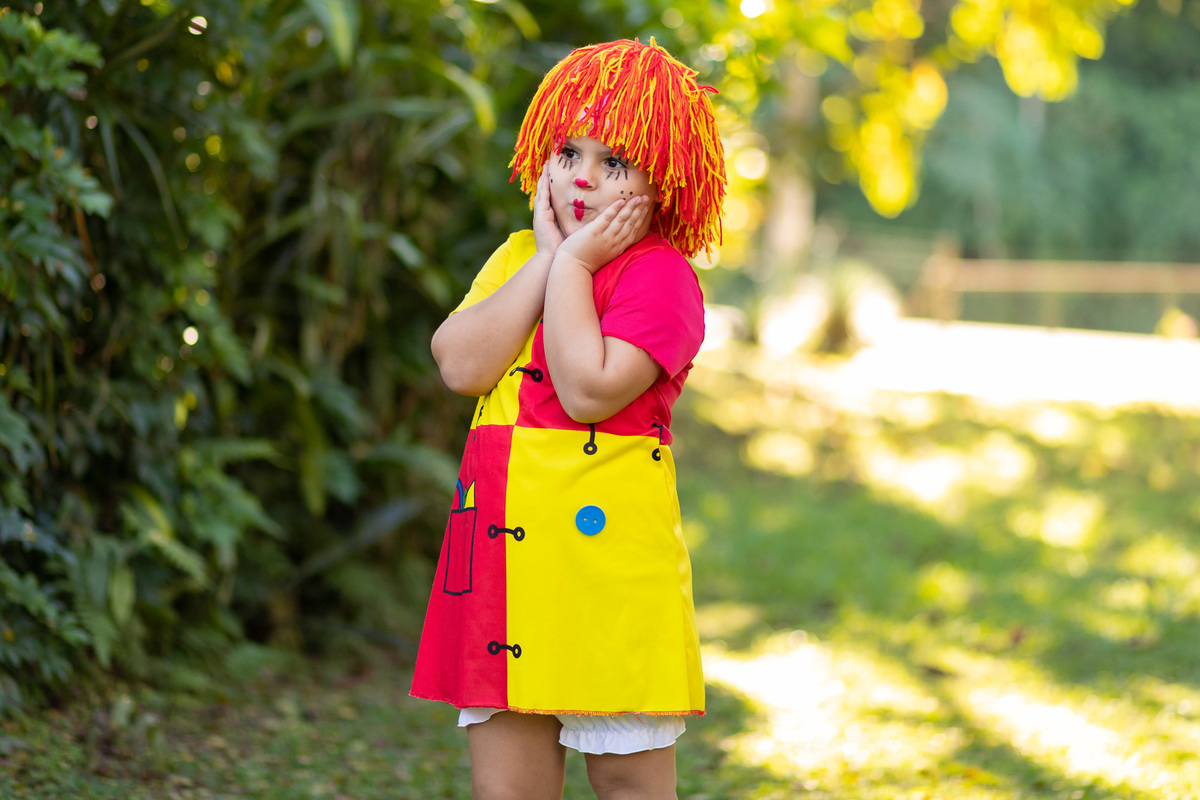 Pra registrar a passagem dos seus 6 anos a Laura quis ser Emília por um dia, com figurino completo!