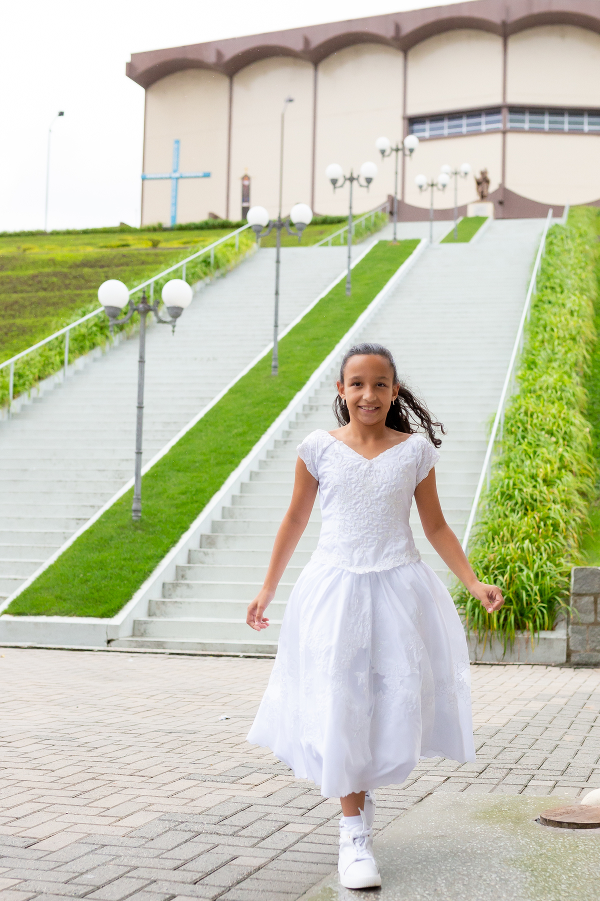 Através da câmera, capturei a beleza e a emoção desse momento único, eternizando a inocência e a devoção da Fátima.
