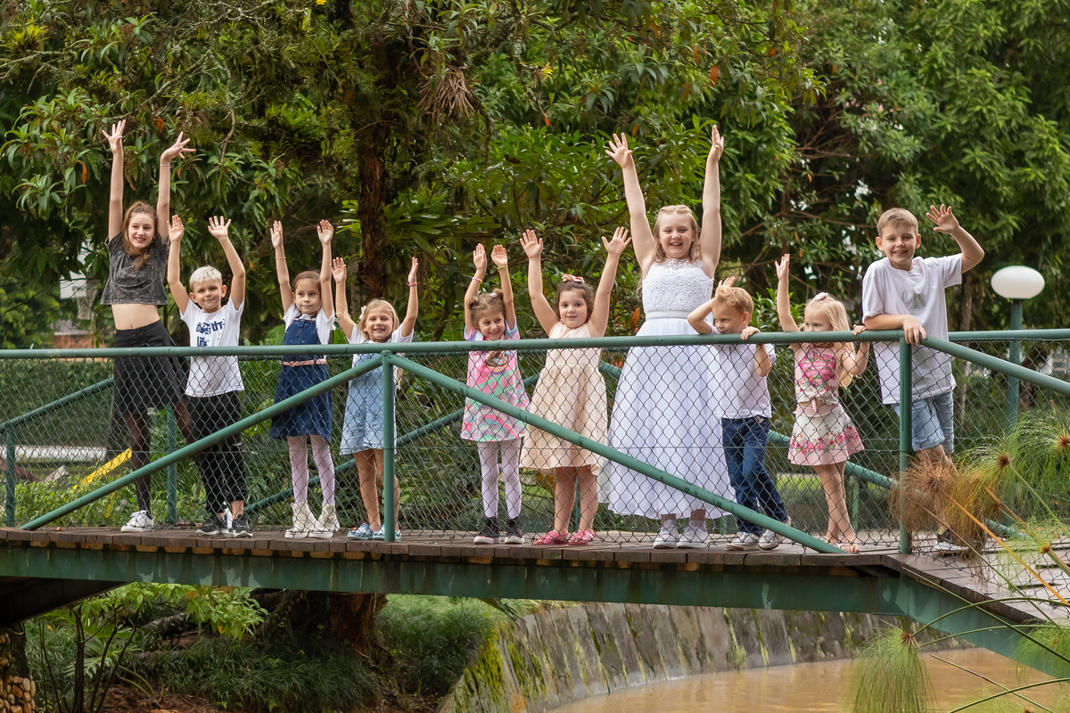 Nem mesmo a chuva caindo, apagou o sorriso da Isabela! Ela sabia que aquilo era chuva de bênçãos pelo dia especial que ela estava vivendo., seu Primeiro Encontro com Jesus!
